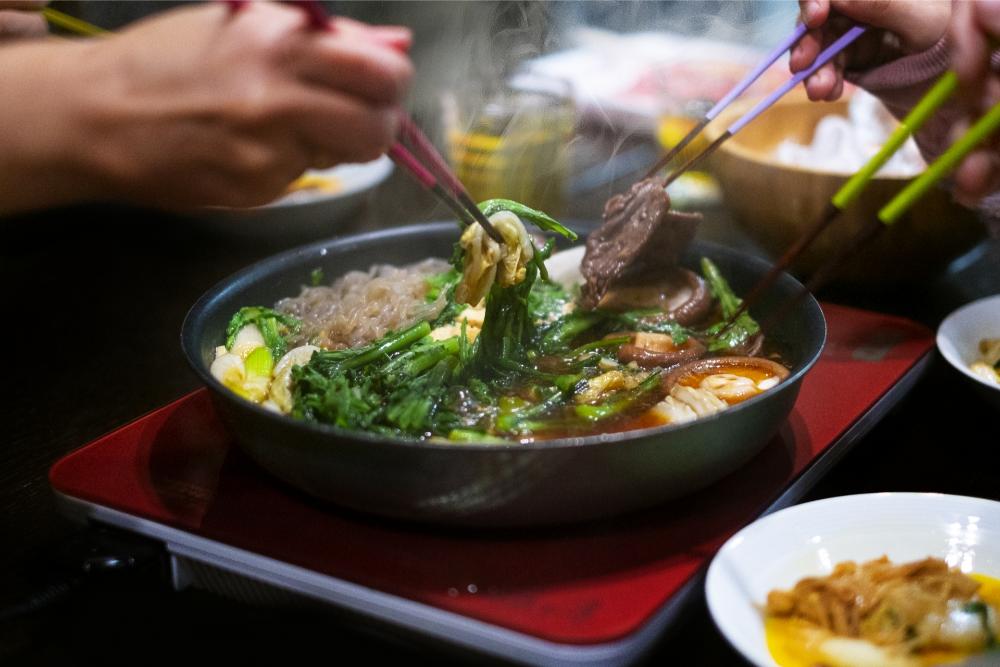 ここでは、ドーンとフライパンごと食卓に出してすき焼き気分の『牛ごぼうと豆苗のすき焼き風』を教えてもらいます。