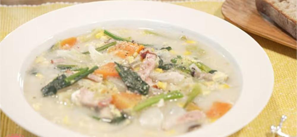 2026年3月11日 NHK「あさイチ」では、あの人が飲んでいる”ご自愛スープ”の特集で、料理研究家の小林まさるさんの「野菜とオートミールのスープ」が紹介されました。