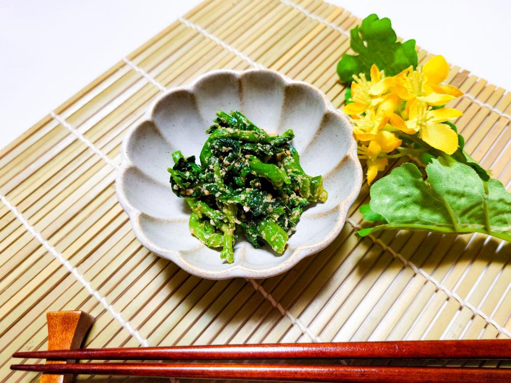旬の菜の花を使った、香り豊かなごまあえのご紹介です。ほろ苦さが持ち味の菜の花に、コクのあるごまの風味を合わせることで、季節感あふれる一品に仕上がります。